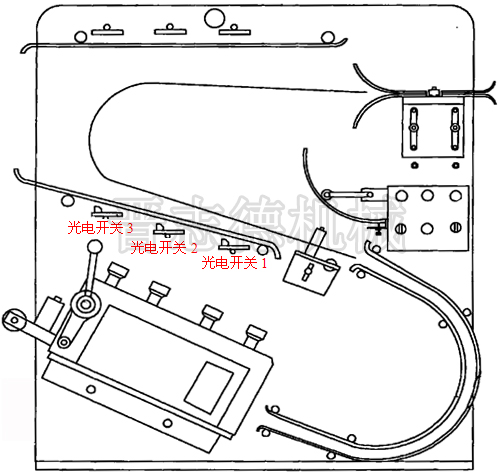 S型沖床同步整平機實際使用時,材料通過拉料輪進入S型軌道,經過整平輪整平,消除材料原有應力及變形。整平厚度以及平直度由整平調節手柄調整。變得平整后的整平材料,進入S型軌道。處于S型軌道中的材料,依據所處的位置,光電開關1、光電開關2和光電開關3會給予變頻器相應的頻率指示,從而控制馬達的轉速,達到與沖床相符的送料速度。