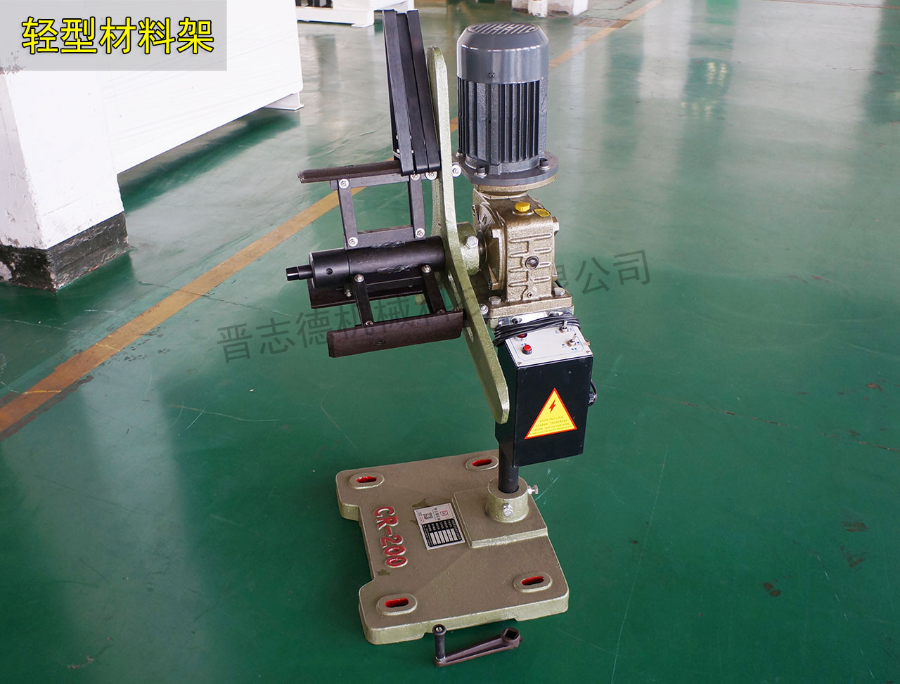 CR系列輕型材料架采用立式收料方式,主要用于沖壓加工中材料比較窄和厚度較薄的原材料開卷放料,以及對沖壓后的廢料進行收集,其特點是結構簡單牢固,操作易會,體積輕巧,占地空間小,方便移動。輕型材料架有放料與收料兩個用途,因此使用也各不相同。